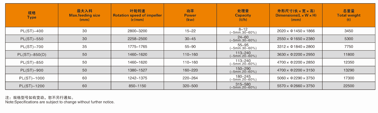2. 同一規(guī)格破碎機(jī)可根據(jù)標(biāo)準(zhǔn)規(guī)定的處理置范圍,安裝不同的裝機(jī)功率滿足不同的需要。