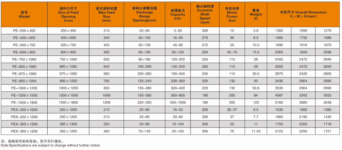 PE系列顎式破碎機具有破碎比大、產(chǎn)品料度均勻、結(jié)構(gòu)簡單、工作可靠、維修簡便、運營費用經(jīng)濟等特點。顎式破碎機廣泛用于礦山、冶煉、建材、公路、鐵路、水利和化學(xué)工業(yè)等眾多行業(yè),破碎搞壓強度不超過320兆帕的各種物料,是初級破碎的首先設(shè)備